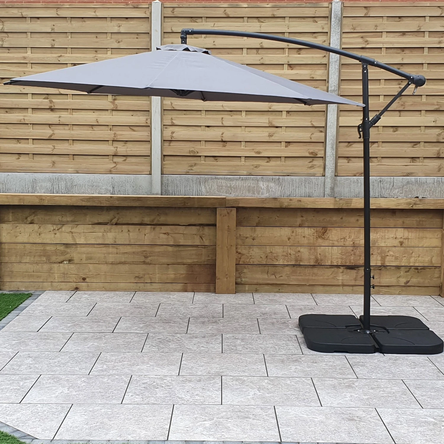 This minimalistic 3m Banana Parasol with Grey Canopy is crafted with Polyester with a PA coating giving a water repellent design. The parasol has a crank handle to raise and lower the 3m canopy and comes with a handle to wind it up and down easily. This adjustable parasol is a great addition for your garden or outdoor space whilst shading from the sun.