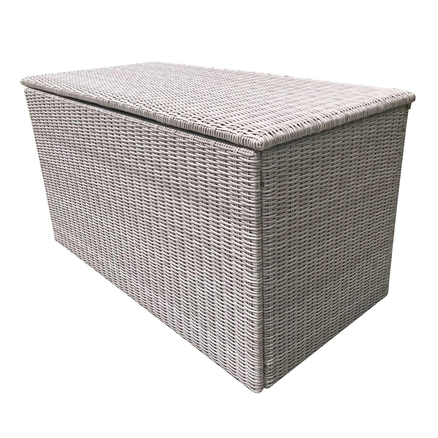 Store away dining cushions and other bits and pieces in this 8mm Half Round Weave Grey Rattan Large Cushion Box! Made from strong and durable 8mm half round weave, this large cushion storage box is finished in grey rattan and is ideal for outdoor use.