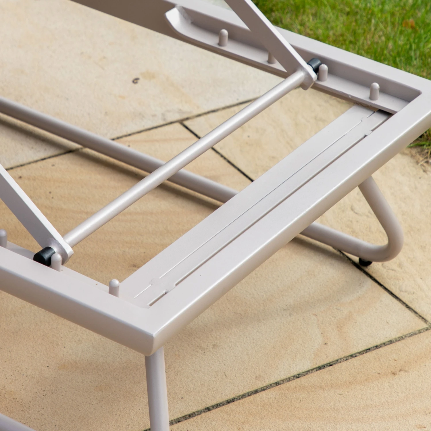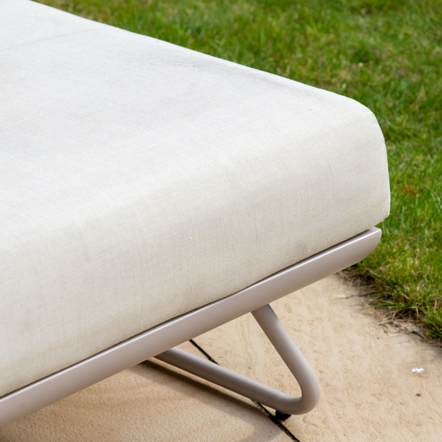 Enjoy relaxing in your garden or by the pool with this Ancona Linen Sun Lounger. The lounger is crafted with a bright white aluminium base and is topped with summer line shade cushions in all-weather fabric. The fabric is quick drying and resistant to fading, mould and stains. The lounger is complete with an adjustable backrest for comfort.