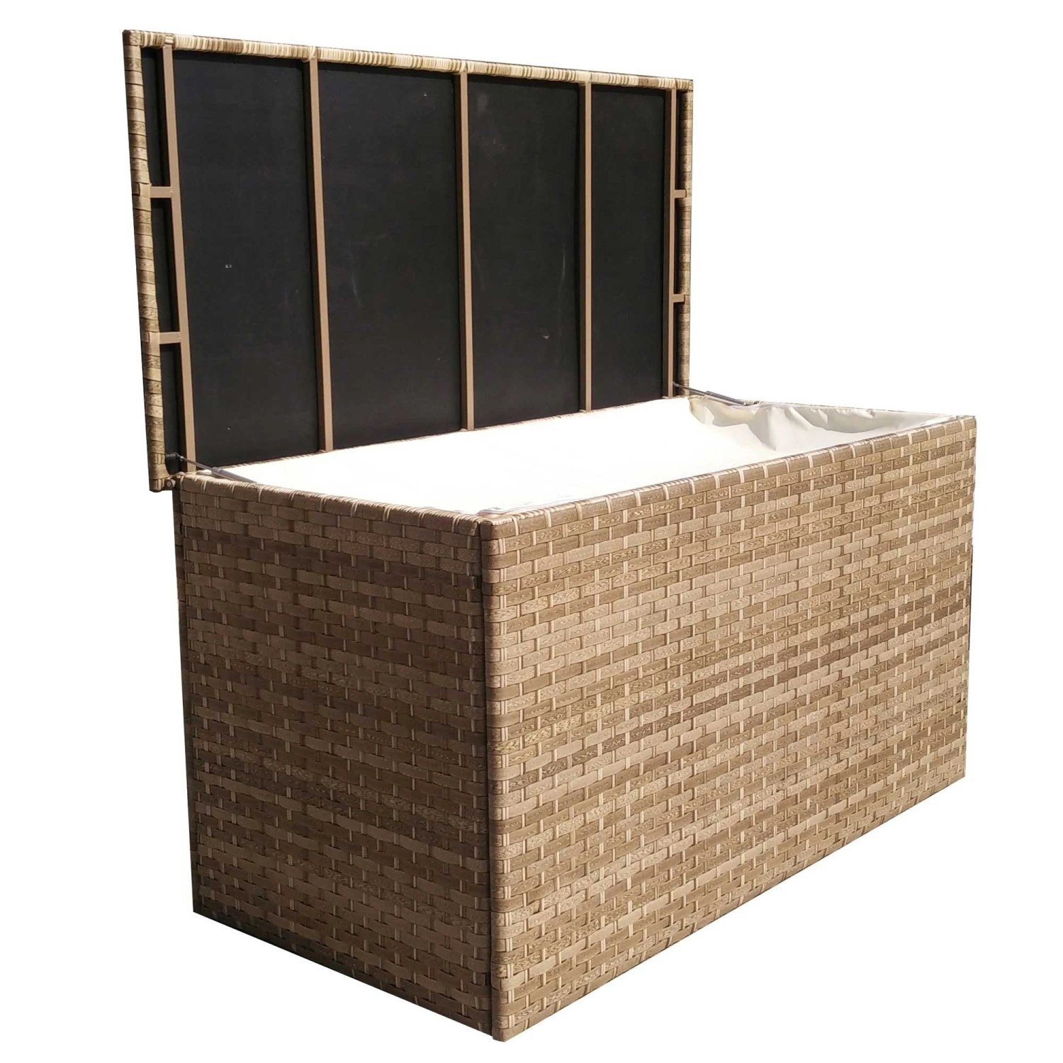Our latest Caramel Brown Rattan Medium Cushion Box with Zipper Liner is the perfect addition to any garden or outdoor space. With it’s medium size compartment, this storage box is spacious and great for storing garden sofa cushions. Made with caramel brown weave rattan.
