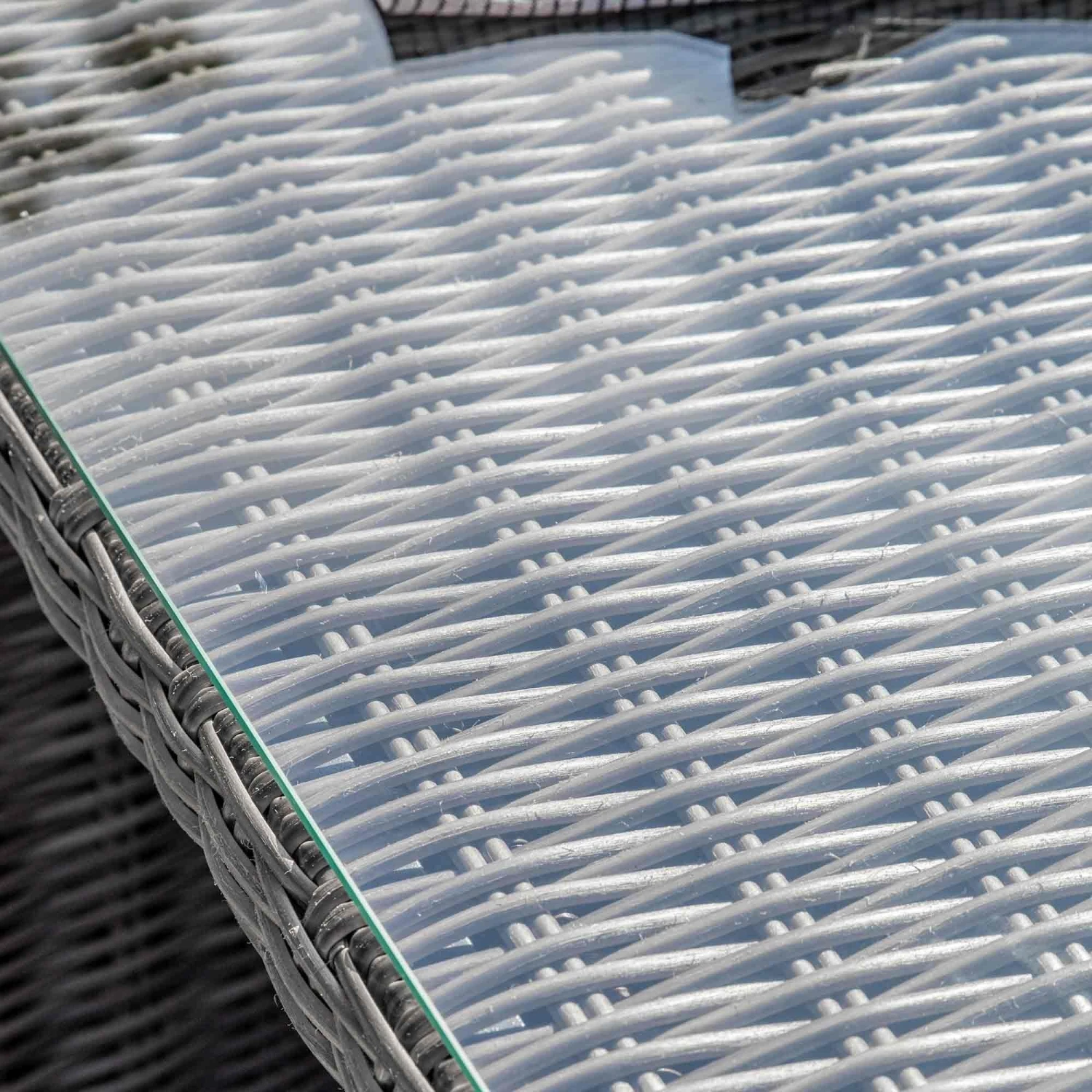 This Corse Grey Rattan 10 Seater Cube Dining Set features six dining chairs, six stools and a dining table, ideal for all garden spaces. Crafted from all weather 5mm PE rattan, this weatherproof furniture set showcases a stunning washed grey finish and is ideal for socialising and unwinding with friends and family. The chairs and stools include showerproof cushions for maximum comfort. This rattan garden set is perfectly compact and convenient to store away. The back of the chairs can be folded down, so all chairs and stools can be neatly stored under the table when not in use. The table is finished with a powder coated aluminium frame and tempered glass top.