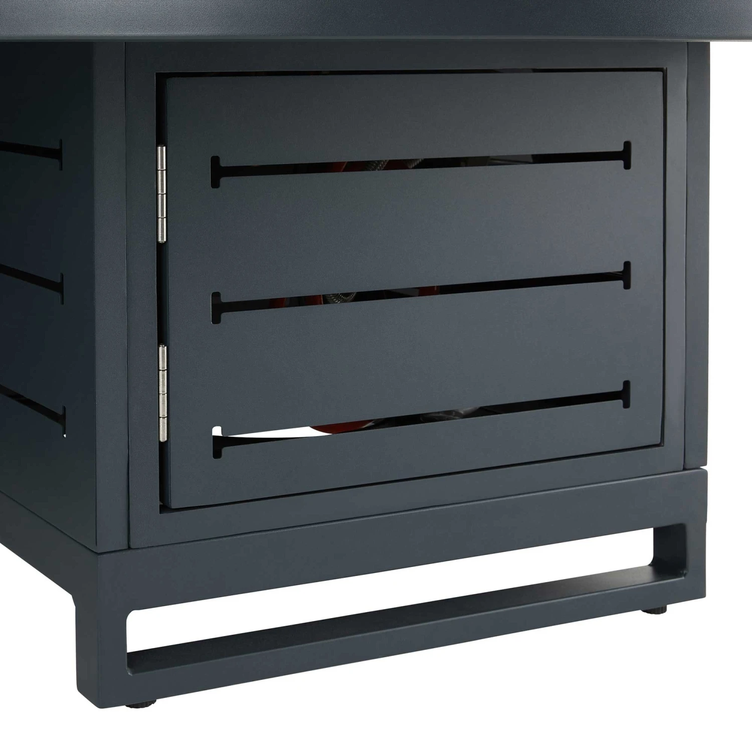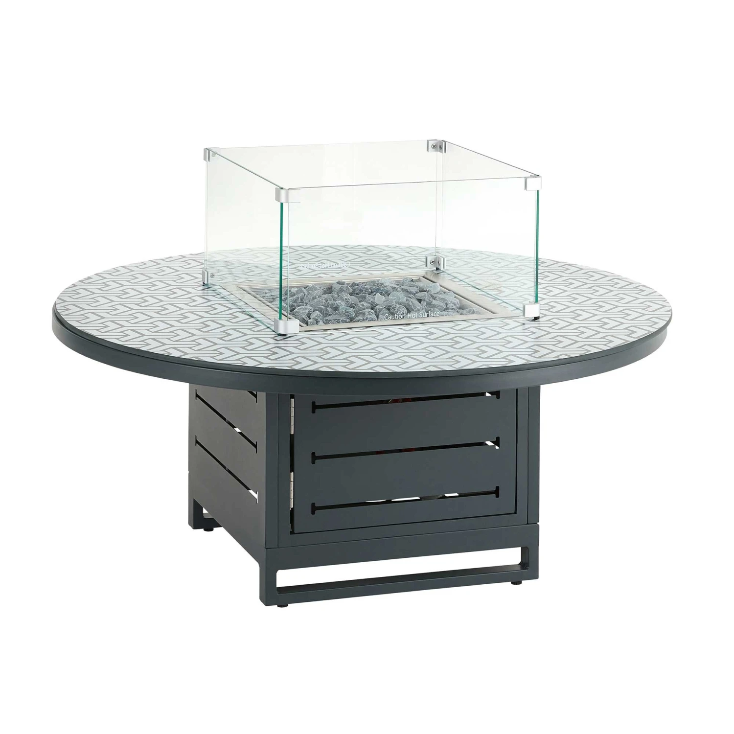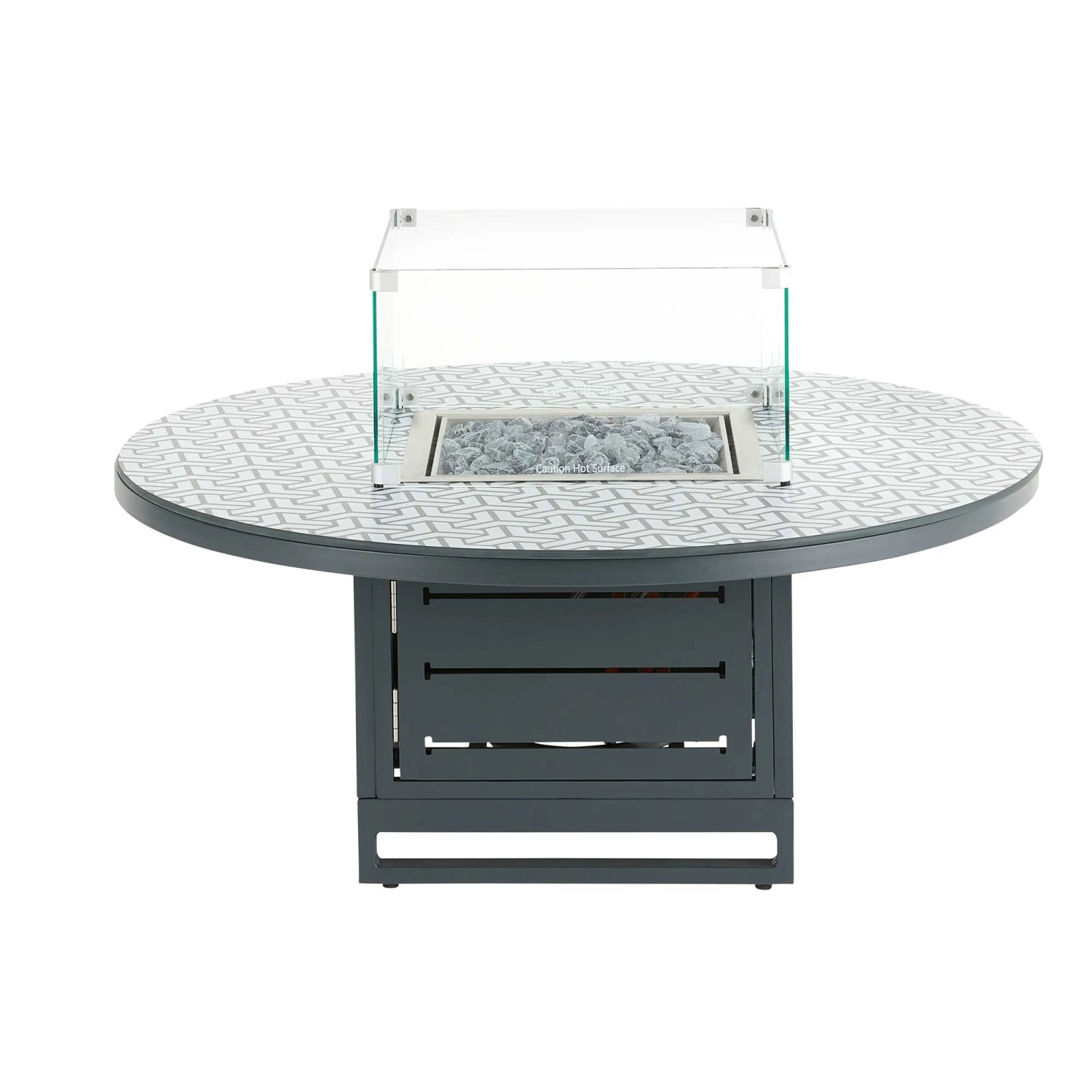 This Dark Grey Outdoor Round Coffee Table with Firepit is perfectly suited for curved outdoor seating! Finished in Dark Grey with a stunning patterned top, the central firepit is the main attraction to this coffee table. With a firepit height of 25cm high, this round coffee table with firepit is great for keeping warm outdoors. This product is CE certified and fitted with 10mm tempered glass.