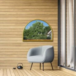 Arcus Gold Metal Framed Arched Garden Wall Mirror – 120x60cm
