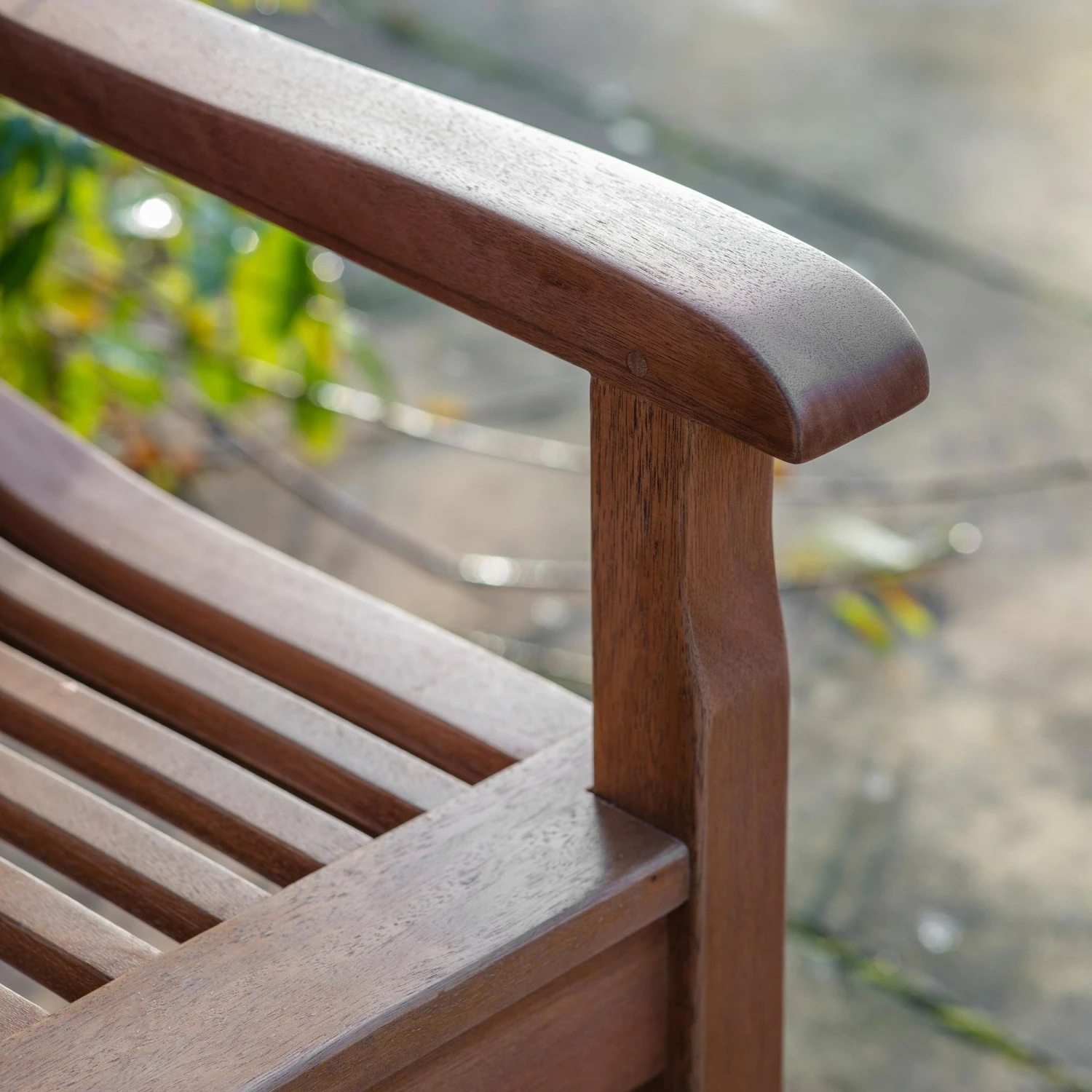 Place this traditional style Granada Outdoor Bench in your garden or outdoor space and relax in the sun! Made with wood and complete with a wooden slat design, this garden bench has a curved back and arm rests for support and comfort. This outdoor bench has a strong and sturdy structure and is made to withstand all weather conditions.