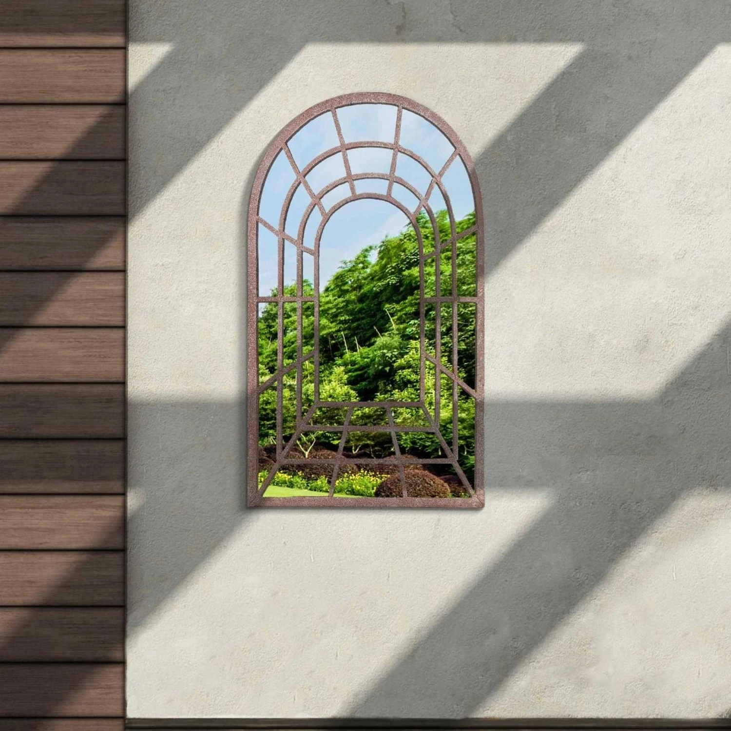 Enjoy your time in the garden when you spruce it up with decorative features such as this Kirkby Decorative Arched Gothic Effect Garden Mirror. A wonderful addition to reflect nature and fresh greenery, it comes with an arched top, bronze metal frame and a church window inspired design. Frost protected for all weather types, it will be proudly displayed outdoors all year round.