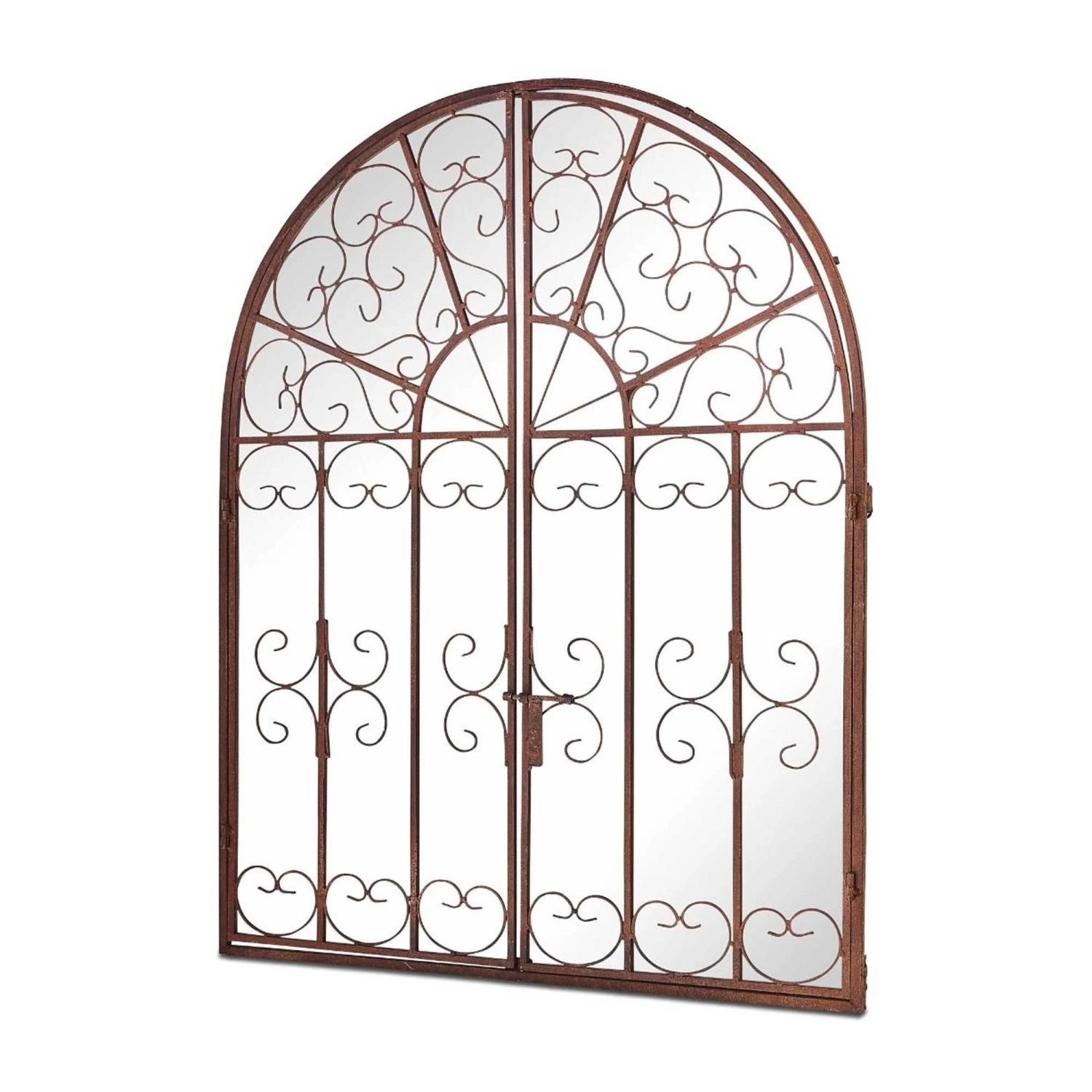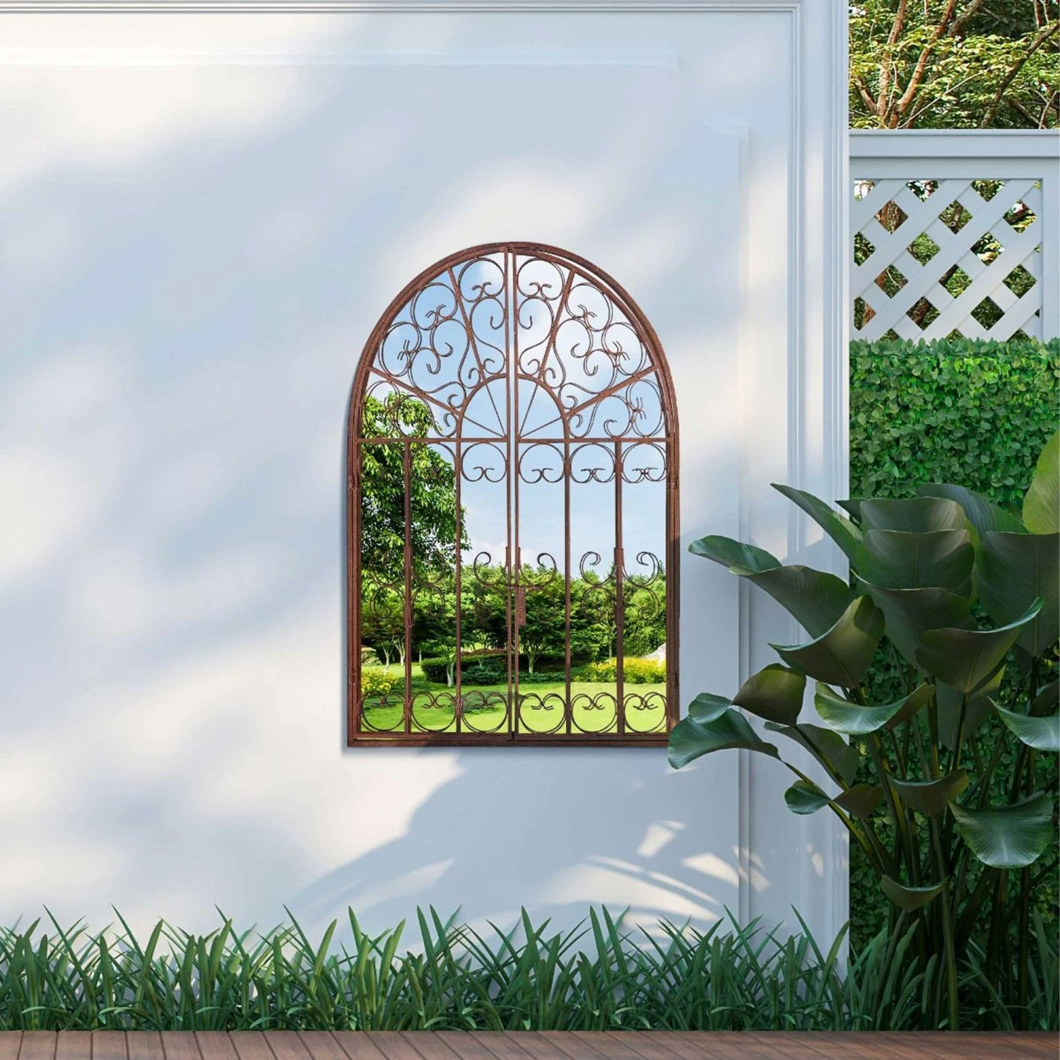 Designed with a decorative finish and ornate patterns, this Kirkby Metal Arch Decorative Window Opening Garden Mirror is the perfect accessory for a wall or fence outdoors to spruce up your garden area and reflect the natural beauty of your garden. Crafted with a metal frame in a bronze finish, it gives the illusion of a window that can be opened with its handy design.