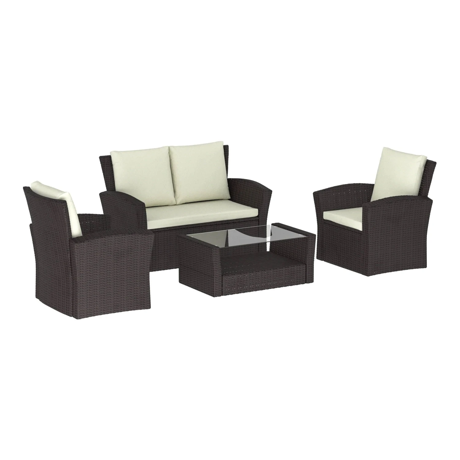 Enjoy spending more time outdoors when you create a garden space that provides you with somewhere comfortable to relax, dine and chill out in using this Mylor Brown 4 Seater Rattan Set. A beautiful rattan wicker designed furniture set that includes a 2 seater sofa, 2 chairs and a glass topped table with shelf, it comes in a brown finish and is incredibly stylish boasting a contemporary design. With the ability to seat 4 people at a time, you can enjoy family time or have a night in with a loved one or friends to make the most of the summer months.