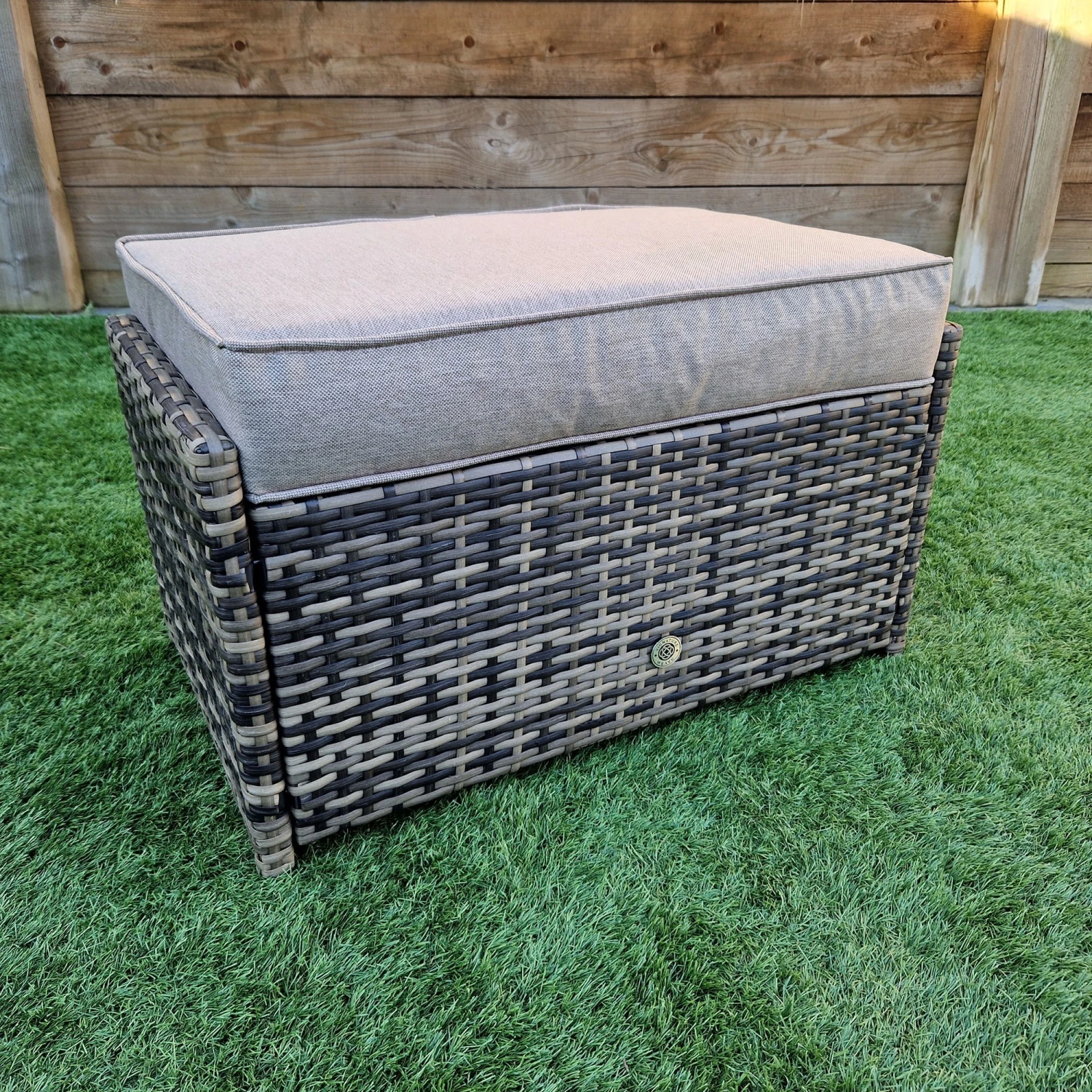 Add this style Ottoman Bench in 8mm Nature/Brown Flat Weave to your garden, outdoor space or conservatory. The minimalist design features an aluminium frame covered in brown flat weave and is complete with a padded natural tone cushion for extra comfort. The ottoman will fit in with your existing furniture to add more seating or will make a great stand alone piece.