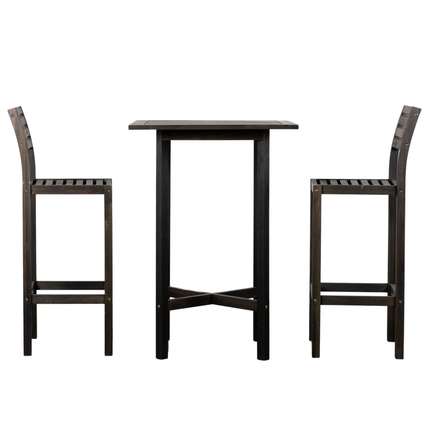 This Pelion Black 2 Seater Outdoor High Bar Set is perfect any time of the day! Enjoy morning coffee, afternoon tea or drinks by the sunset with this fabulous high bar set. This outdoor high bar set is ideal for small gardens and features a tall bar table and two bar stools with backs. This outdoor set is crafted from Acacia Wood and boasts a lovely contemporary black painted finish.