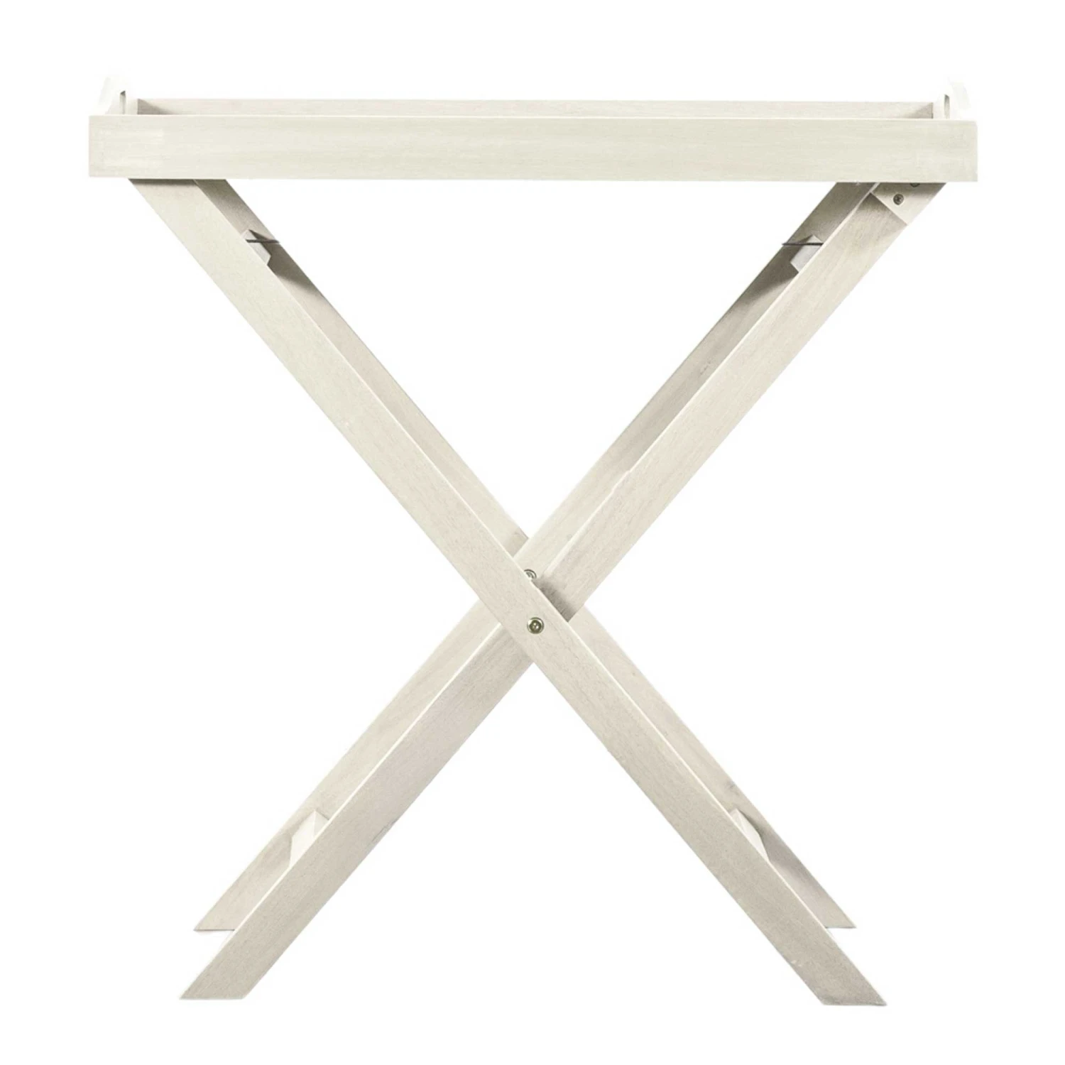 This Pelion Whitewash Outdoor Tray Table will make a great addition in any garden space! Featuring an extremely stylish tray-style top, this table is foldable for easy storage and can easily be opened for you and your guests! This tray table is crafted from high quality Acacia Wood with a whitewash painted finish.