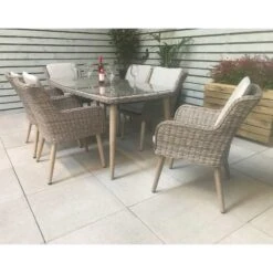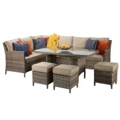 Edwina Natural And Grey Rattan Corner Sofa Dining Set With Lift Table