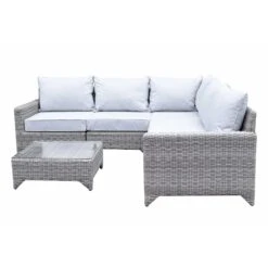 Georgia Grey Rattan Corner Sofa Set With Ice Bucket Coffee Table