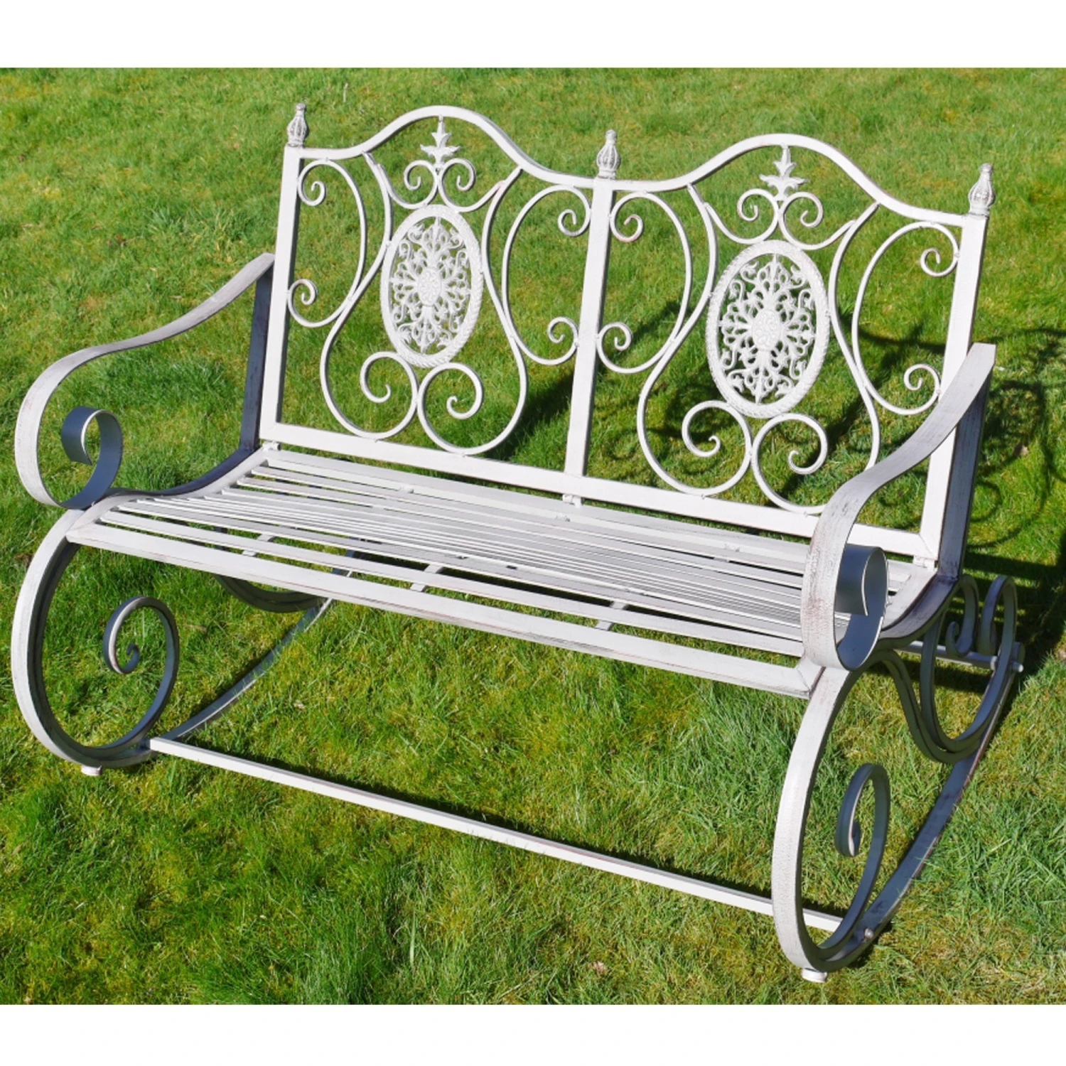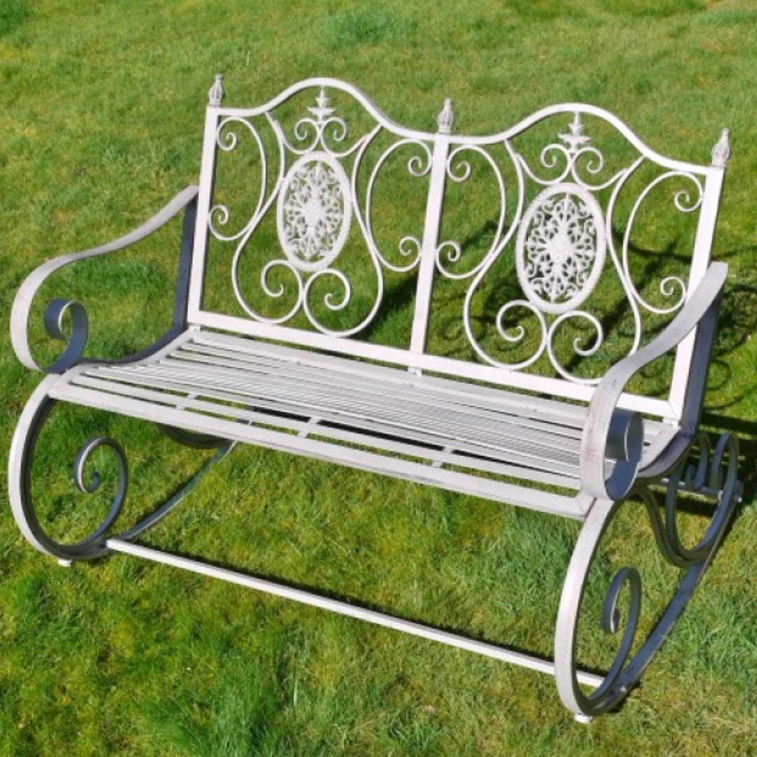 Give your garden more of a french style look with this Rocking Garden Bench. Complete with a grey finish this will be sure to add a unique feel to any outdoor space.
