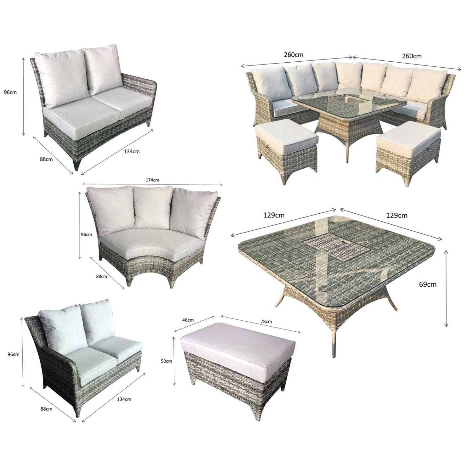 The Sarah Grey Rattan Corner Sofa Dining Set would be an impressive addition in anyone’s garden with enough seating for when family and friends visit including a corner sofa and 2 benches. There is also a spacious table to place food on with even an ice bucket inset into the table for the drinks! Scatter cushions should be placed in a dry area when not in use and the table should be covered in extreme heat.