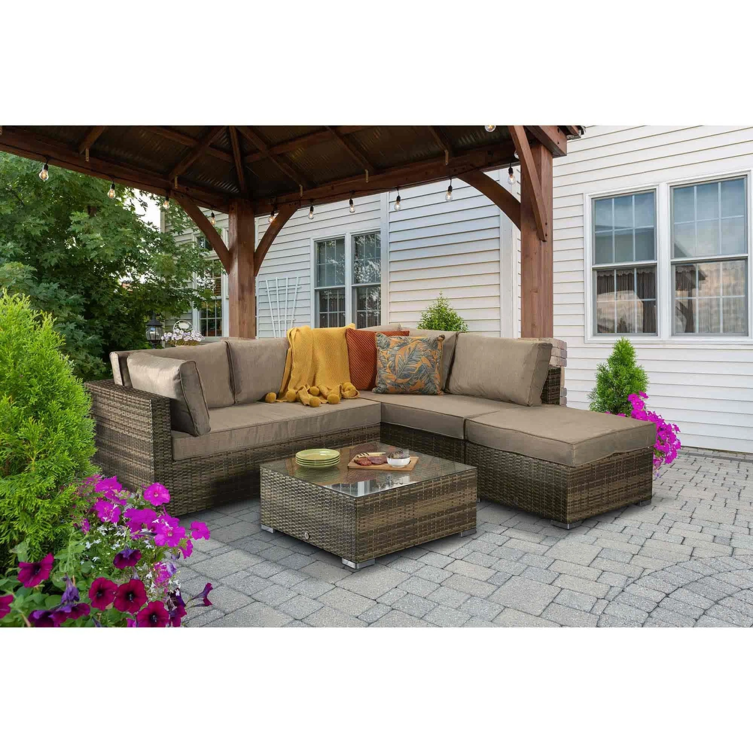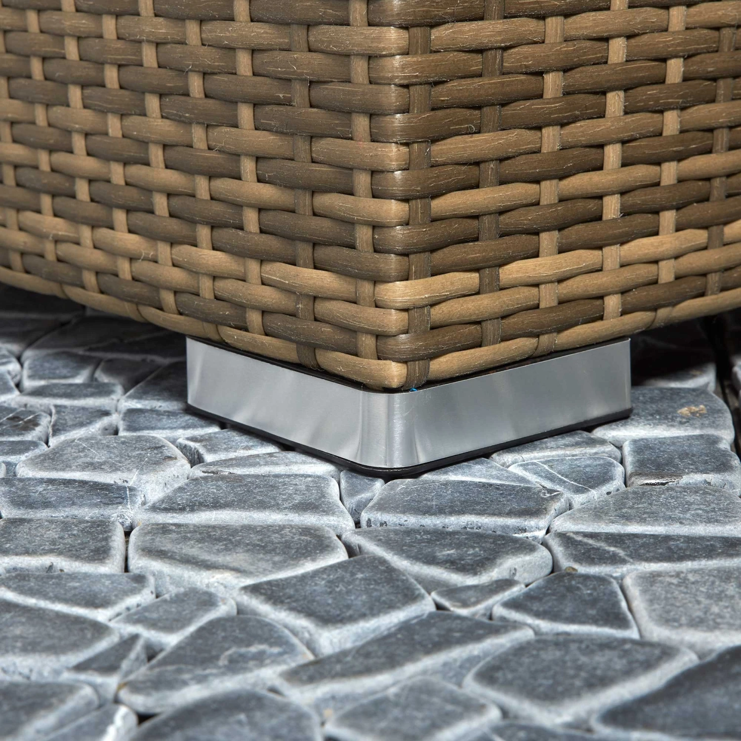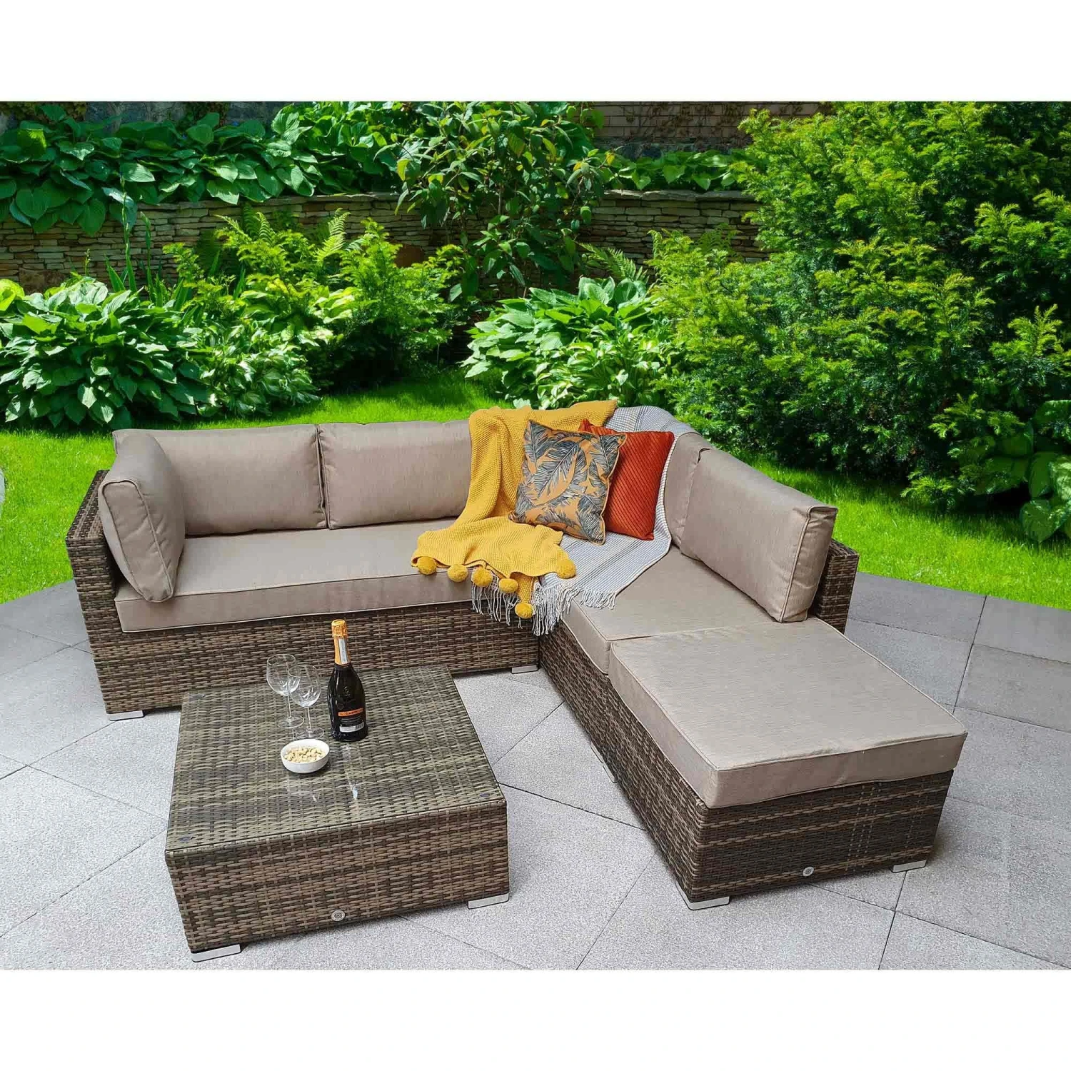 The Savannah Natural Brown Rattan Corner Sofa is perfect for lounging around on in the sun with more than enough room for friends and family to join. This can be used for casual get togethers or even sizable garden parties and celebrations. Also includes a glass coffee table to lay food and drinks on. Cushions should be kept in a dry area when not in use and the glass table should be covered in extreme heat.