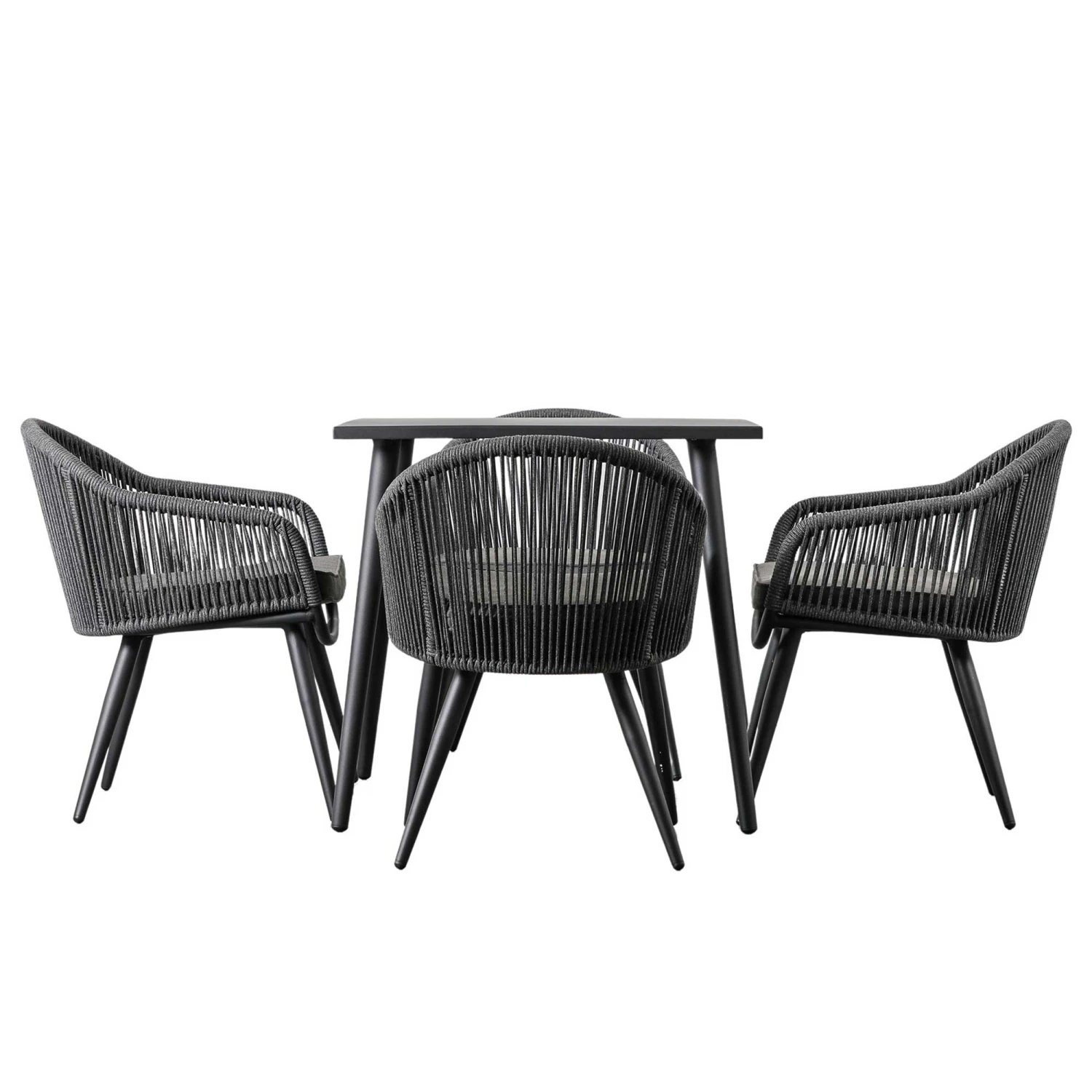 This Scandi Style Charcoal 4 Seater Outdoor Dining Set is great for meal times and gatherings of up to 4 people. This outdoor dining set is made from powder coated aluminium frames and complete with a contemporary charcoal finish and showerproof Scandi style cushions in a matching tone.