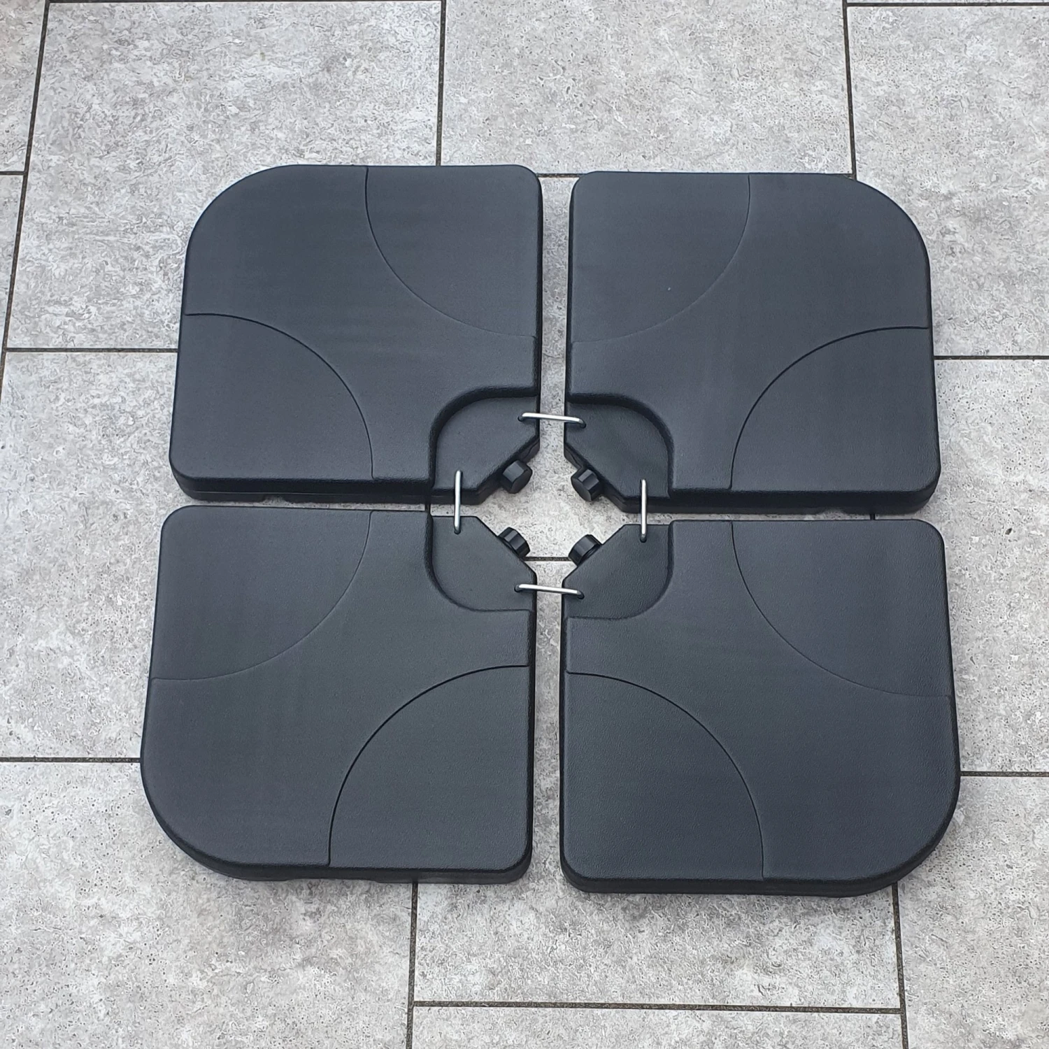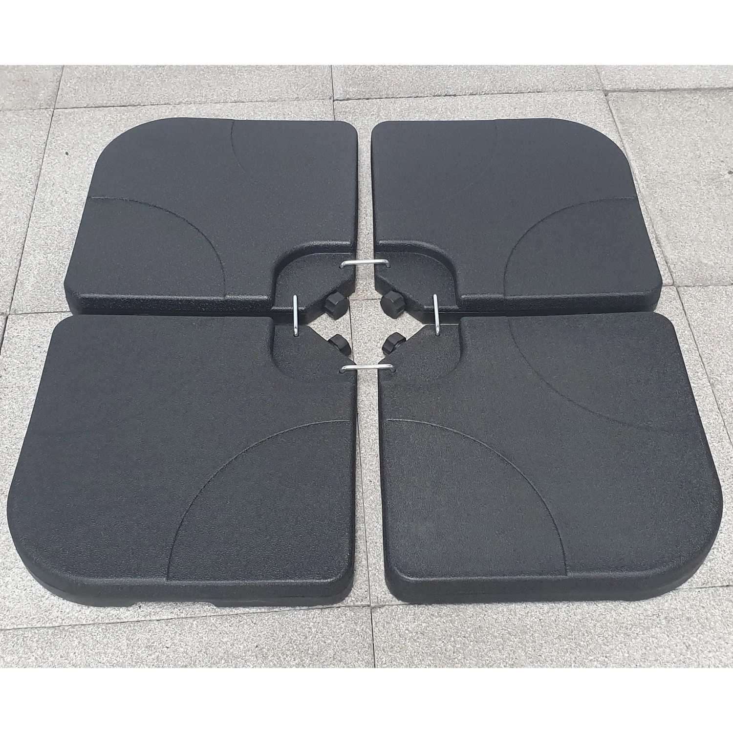 This Set Of 4 Plastic Parasol Bases with U Link Bracket is suitable with sand or water to secure your parasol. The base comes in a set of 4 plastic bases with U link bracket and can be use with a 3M Roma & banana parasols.