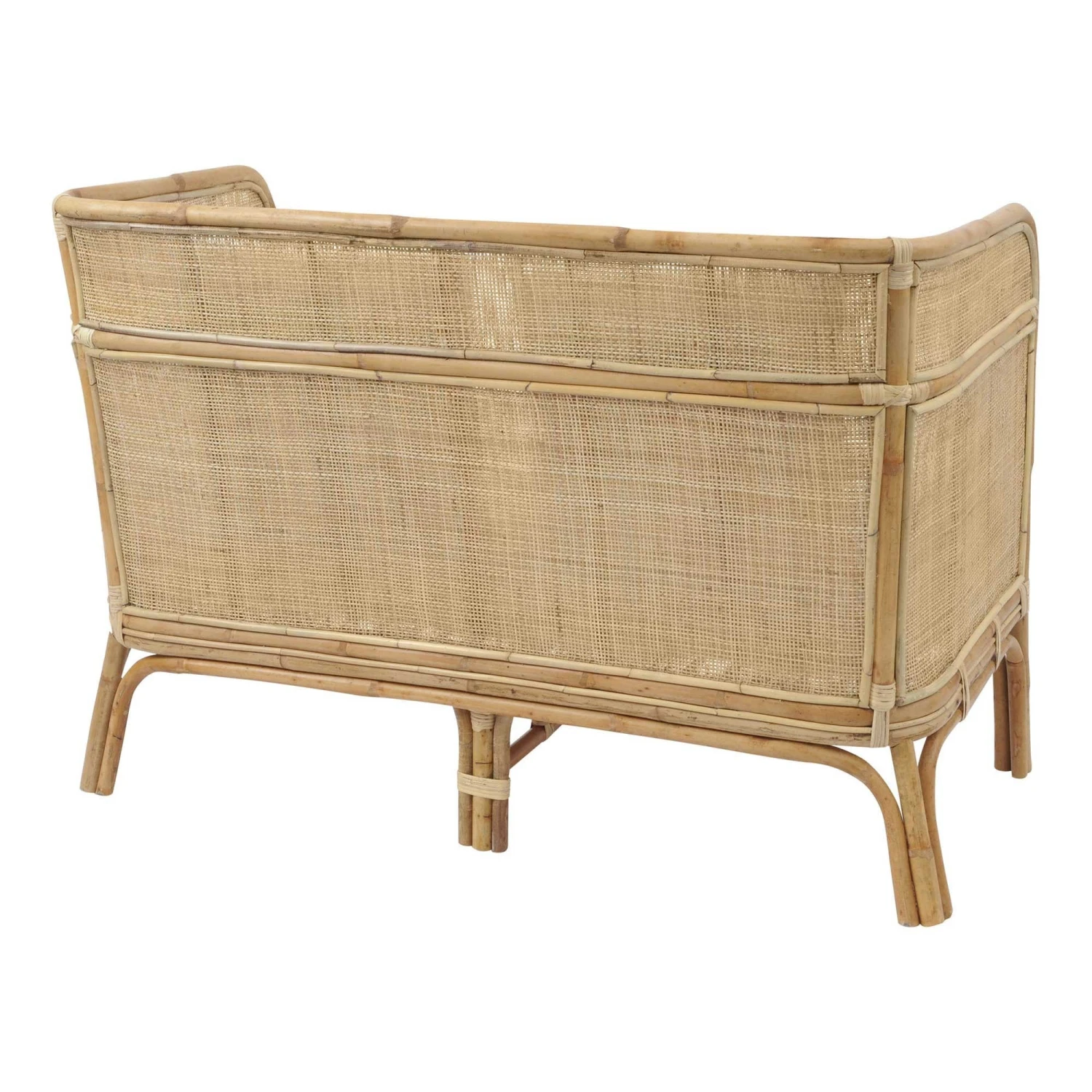 Providing support and a comfortable seat for your garden, patio or conservatory, this Toba Natural Rattan Bench with High Wrap Round Back comes crafted from rattan wicker with seat cushions in a neutral shade. Modern in design with a high back and handwoven finish, it can seat 2 people comfortably on it.