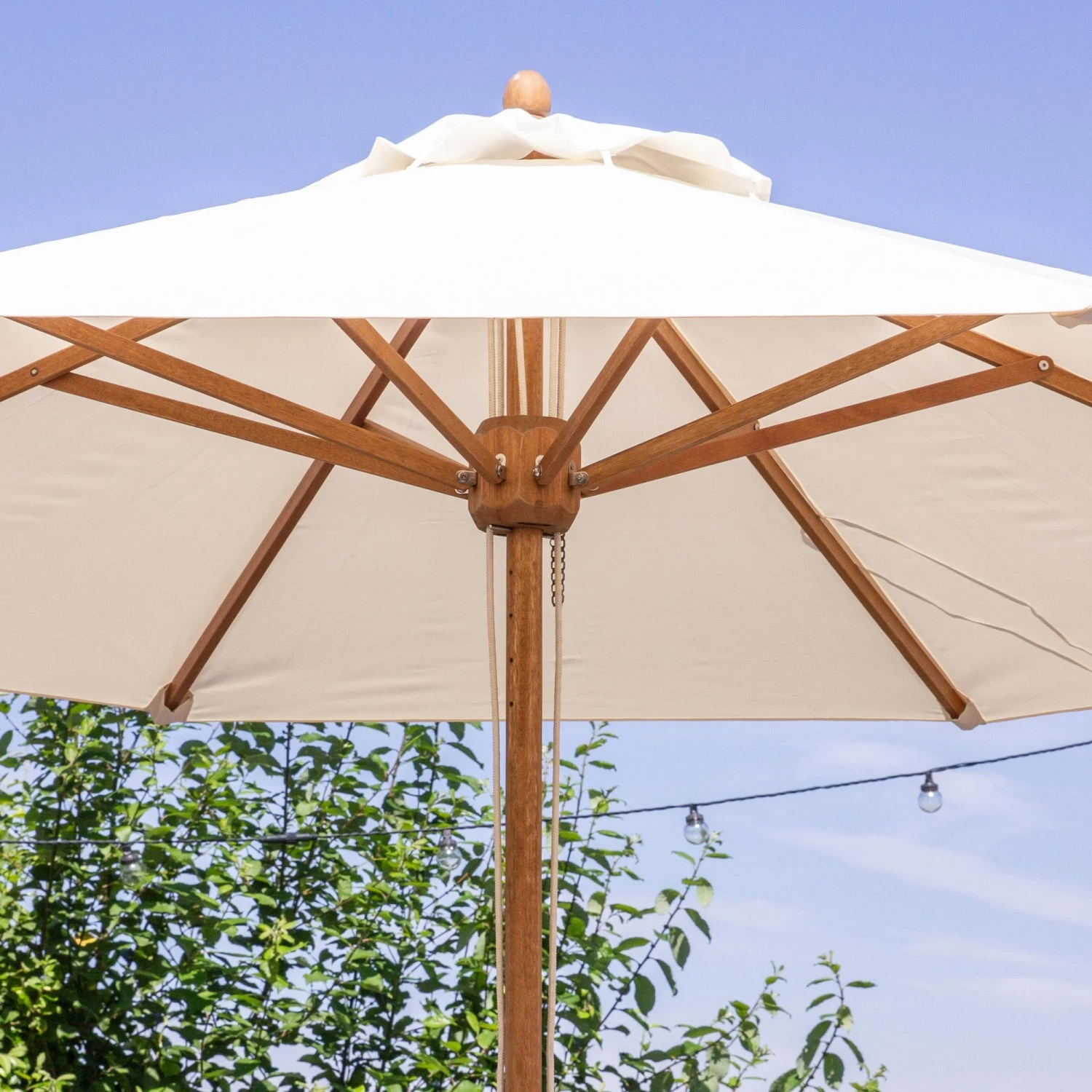 This large Toledo Ivory White Parasol is perfect for keeping you and your friends in the shade whilst in the garden. This outdoor umbrella spans 3 metres wide and is finished with a copper frame and pole for a modern look. This garden parasol is heavy-duty and is made with polyester to withstand all weather conditions including heavy rain and sun.