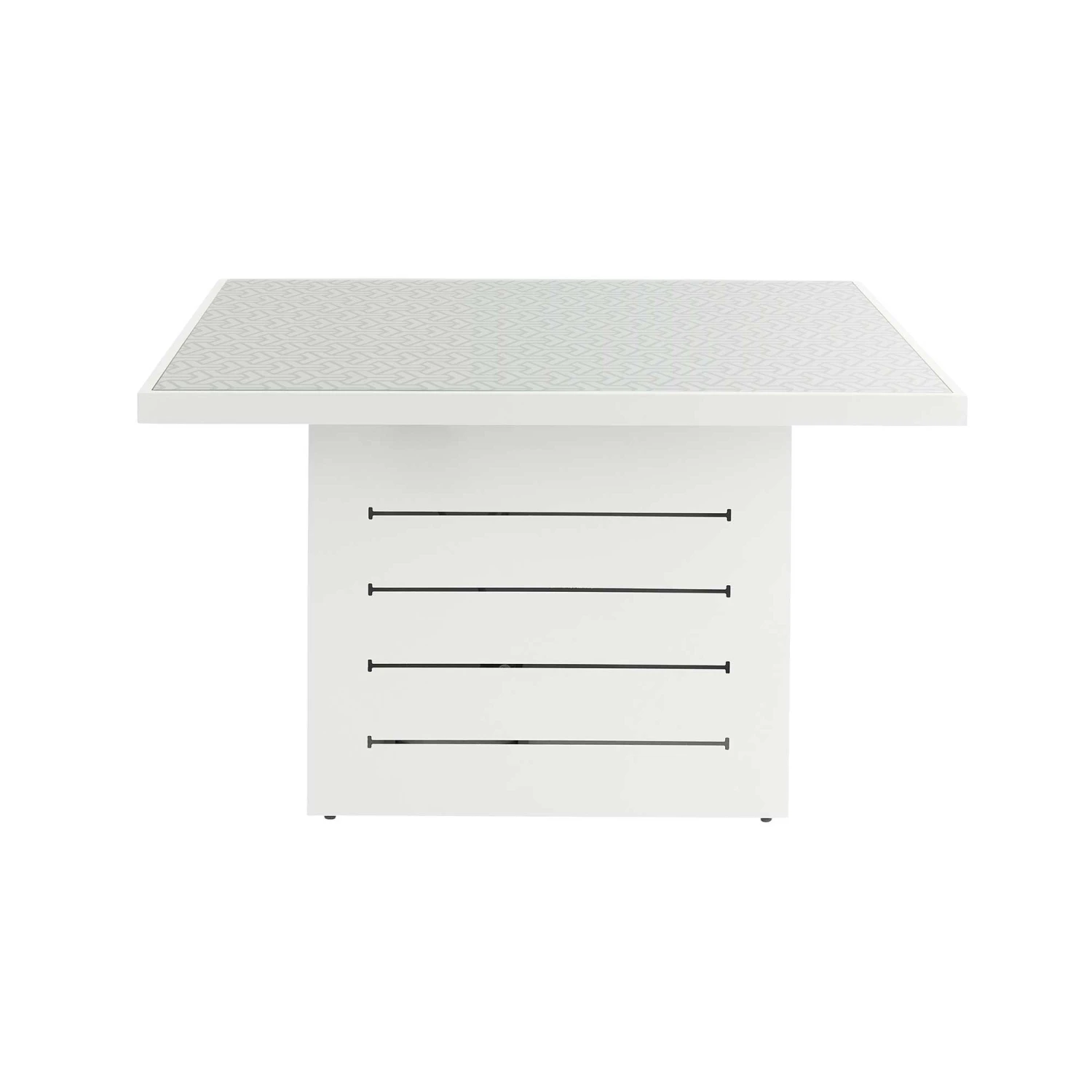 Enjoy meal times in the sunset with this White Patterned Top Square Outdoor Dining Table! Seating up to 4 people, this dining table is suitable for outdoor use, guaranteed to withstand all weather conditions. The dining table features a unique table top, making family gatherings even more enjoyable! Also available in Grey.Â